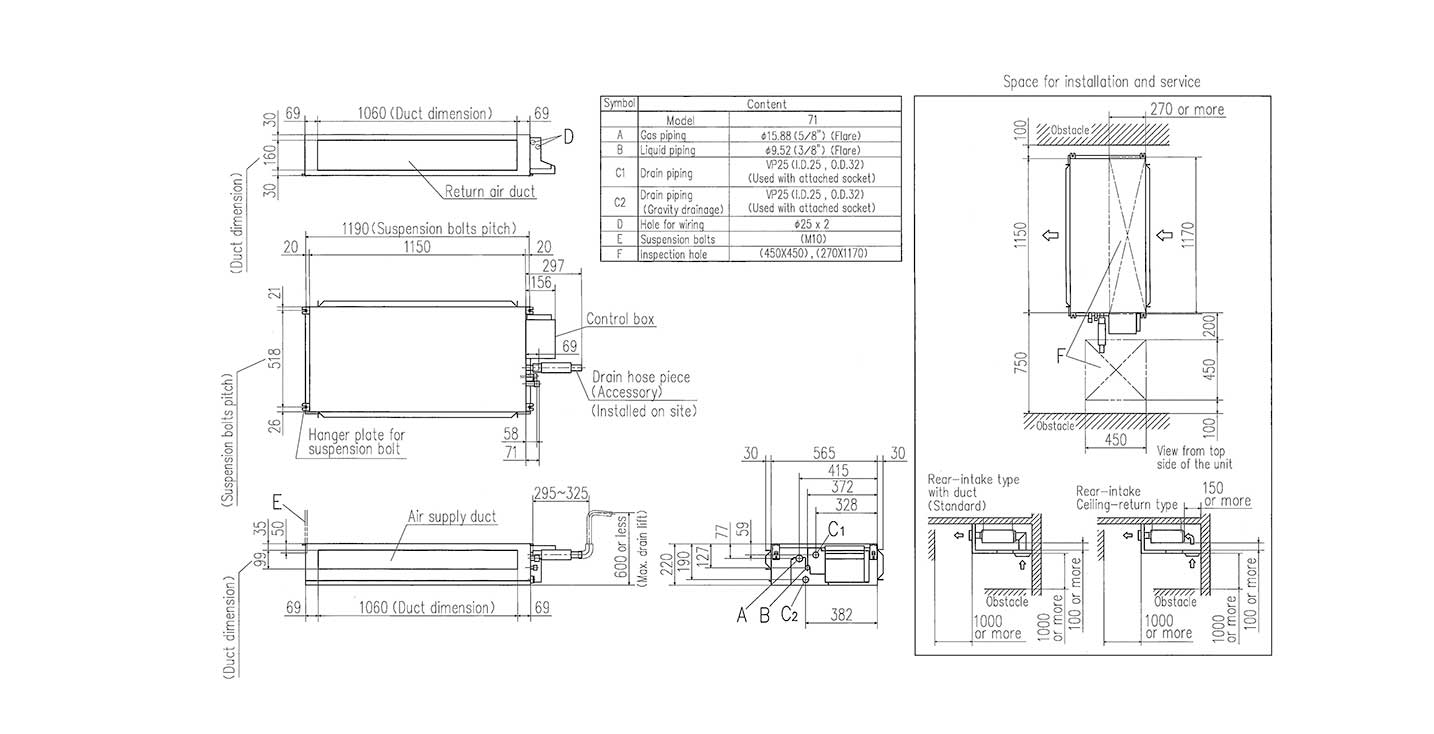 | Piping Size – Gas Line | Ø mm | 15.88 (5/8″) |