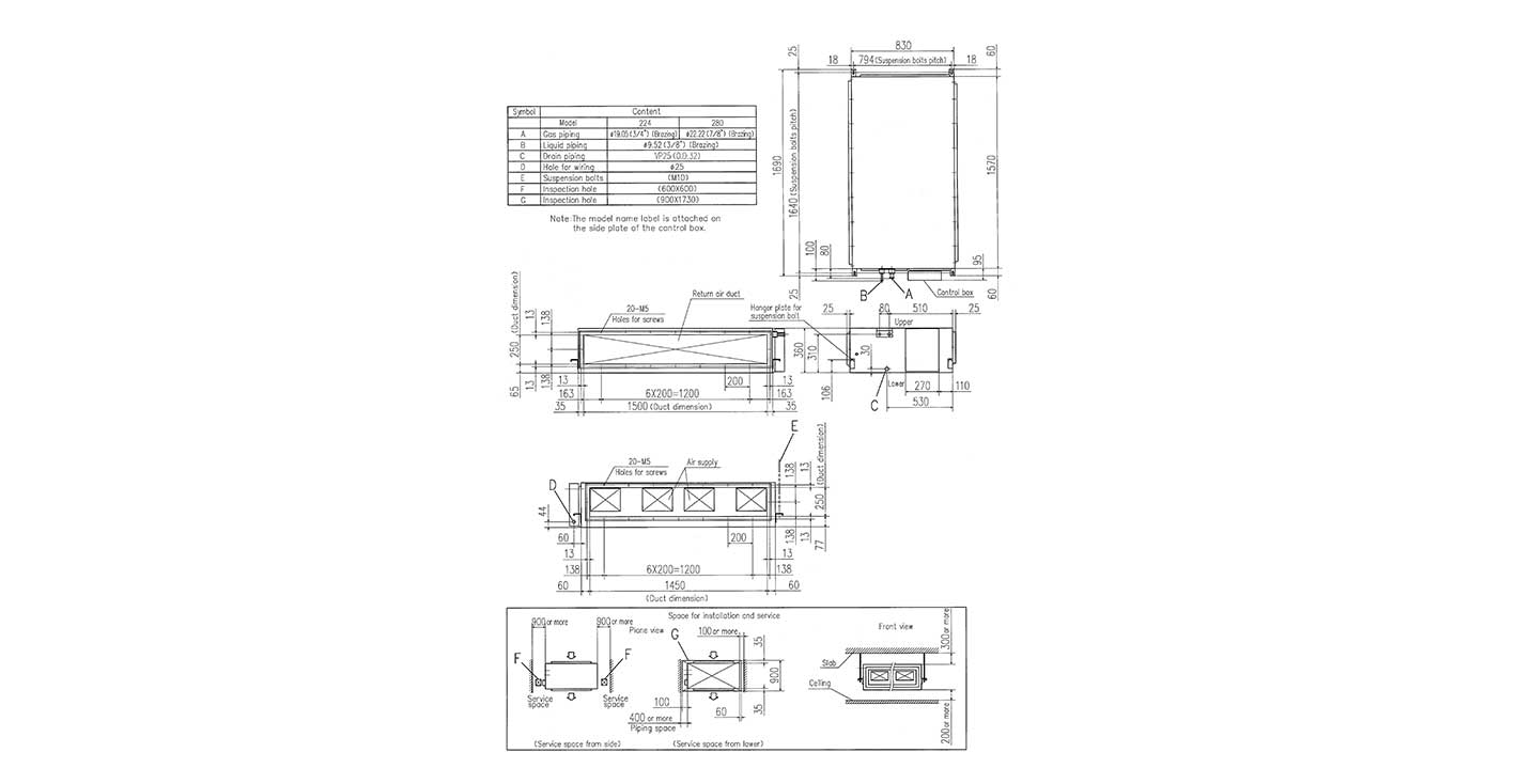 Duct connected VRF indoor unit with a nominal cooling capacity of 22.4 kW.