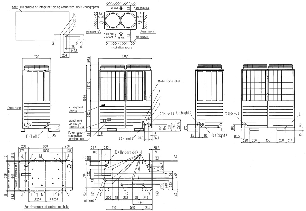 Piping Size - Suction Gas line Ø mm 25.4 (1") [22.22 (7/8")]