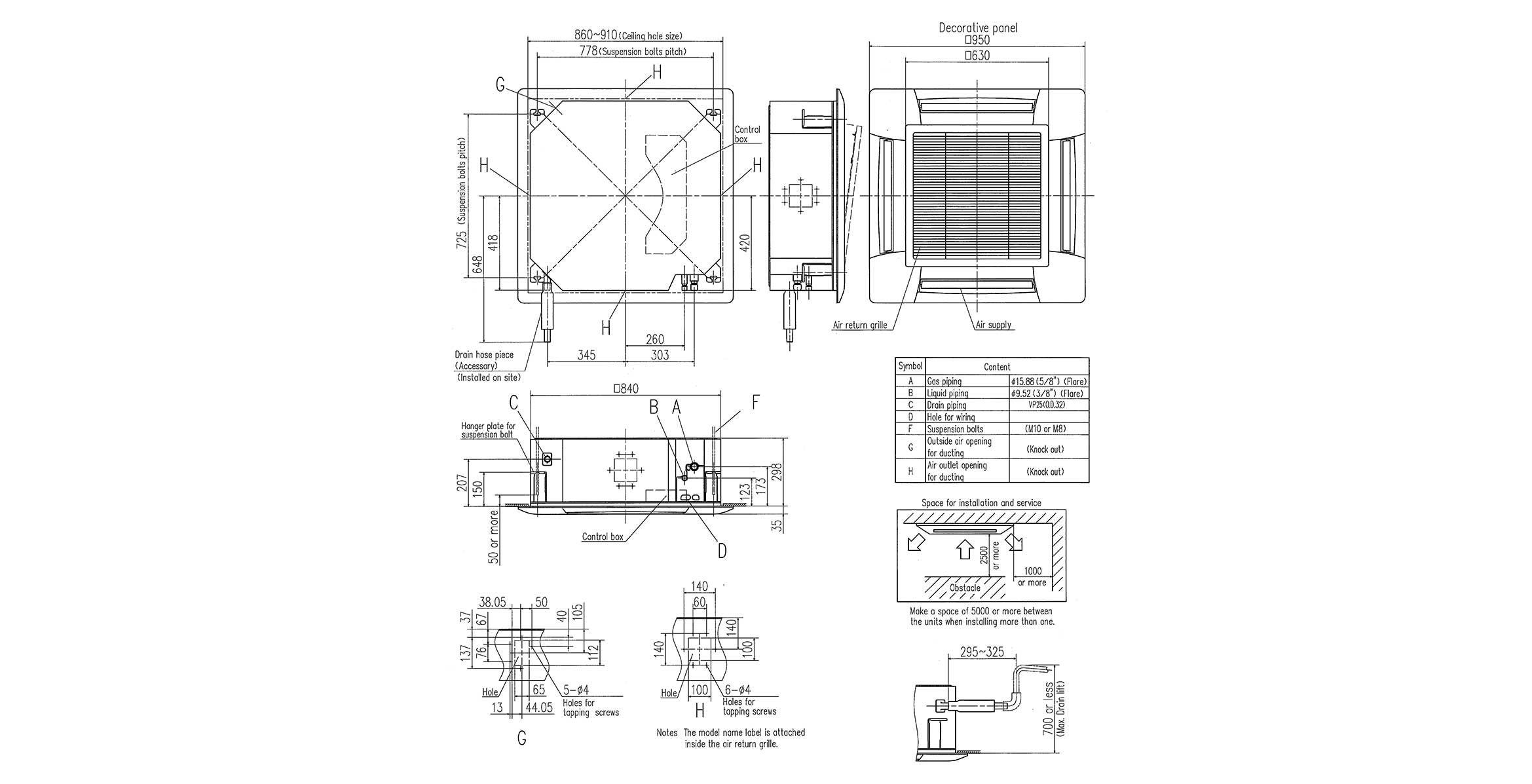 | Ref. Piping Size (Liquid/Gas) | Ø mm | 12.7 (1/2″) / 22.22 (7/8″) |