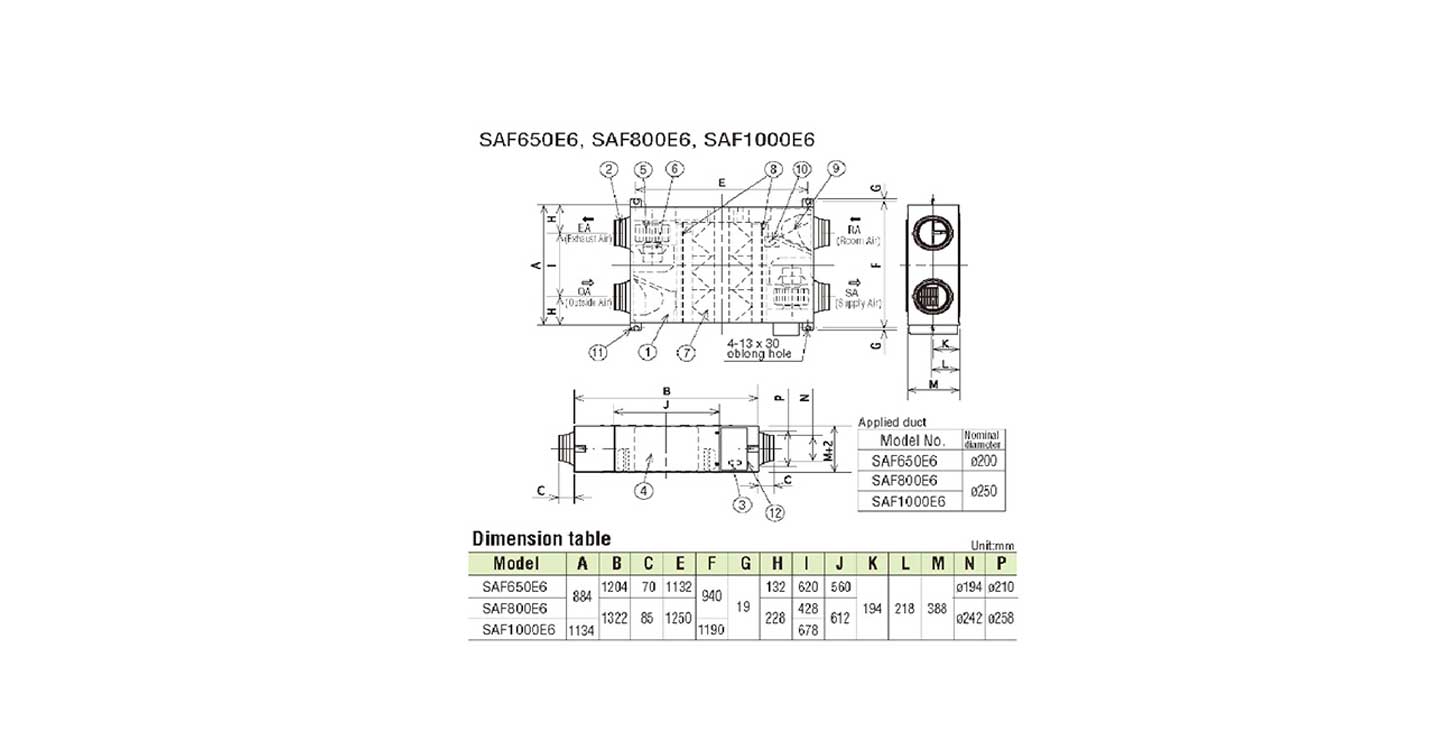 VRF fresh air ventilation and heat exchange unit with an air flow up to 1000m3/h.